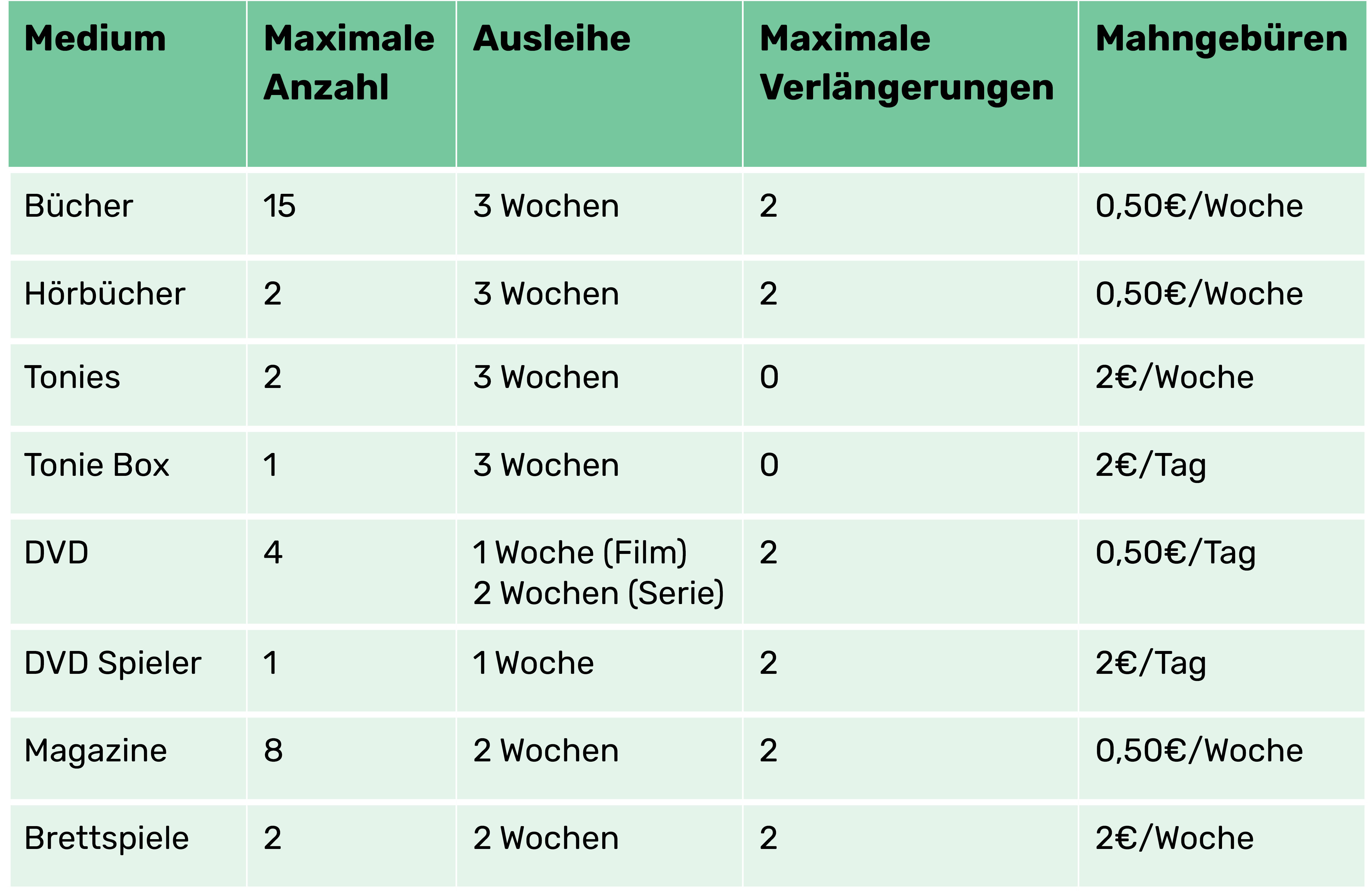 Preise für Bibliotheksausweise: